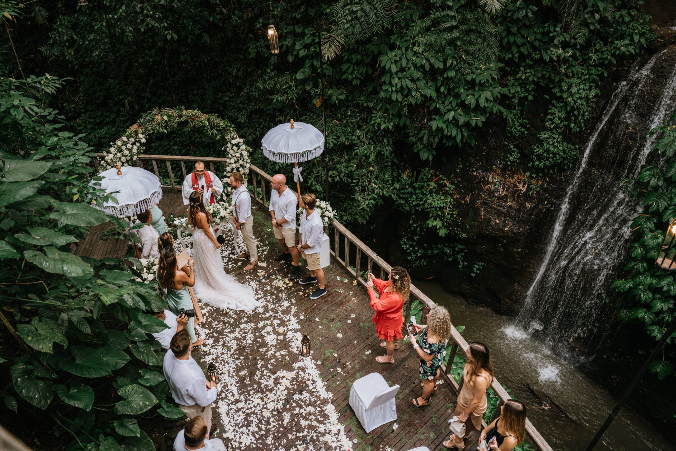 Venue usage for ceremony at Water Wedding with jungle view